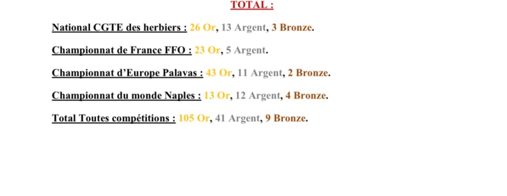 - Championnat de France FFO : 5 Or, 1 best eupheme.